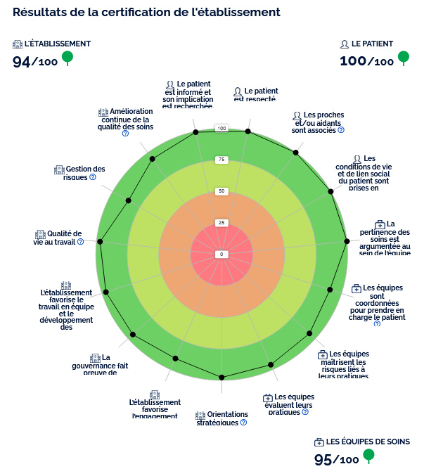 Les établissements de santé (ES) et les ESMS (établissement et services médico-sociaux) sont concernés par 2 dispositifs d’évaluation avec des critères différents, bien que similaires :la Certification pour les établissements de santé c’est-à-dire les hôpitaux sanitaires et l’Évaluation pour les établissements et services sociaux et médico-sociaux ESSMS. Les 2 dispositifs sont pilotés par la Haute Autorité de Santé et impliquent une visite sur site par des professionnels externes.