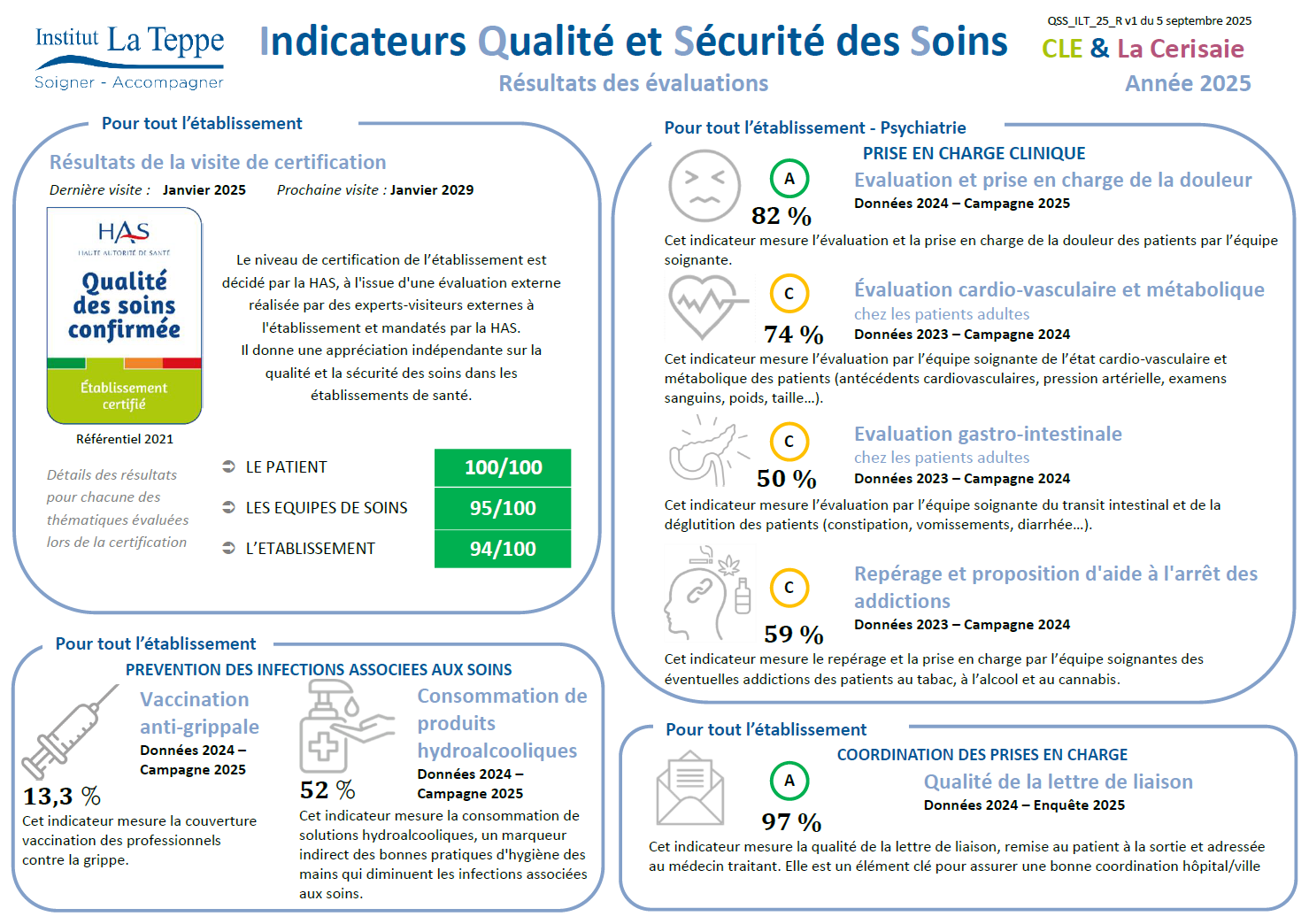 L’Institut La Teppe impulse depuis plusieurs années une démarche qualité et de gestion des risques axée sur l’amélioration de la prise en charge, de l’accompagnement et de la sécurité des soins.